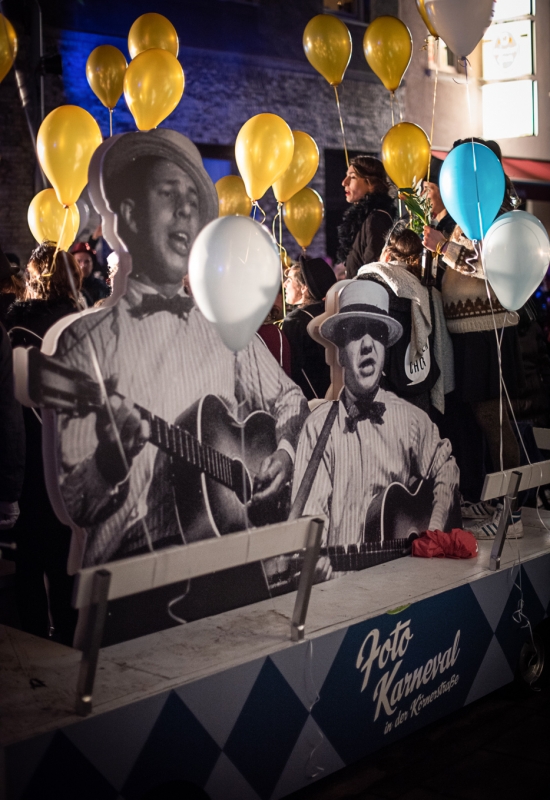 Vergrößerte Figuren aus Chargesheimers Fotobüchern schunkeln neben berühmten Hollywood-Größen, drei hektisch agierenden Karl-Lagerfeld-Kopien oder einem DDR-Grenzer samt Wachhund. Man kann sich kaum satt sehen an all diesen schönen Verkleidungen und ihren geschmückten Ideen. So etwas gibt es nur beim „FotoKarneval“ in der Körnerstraße.