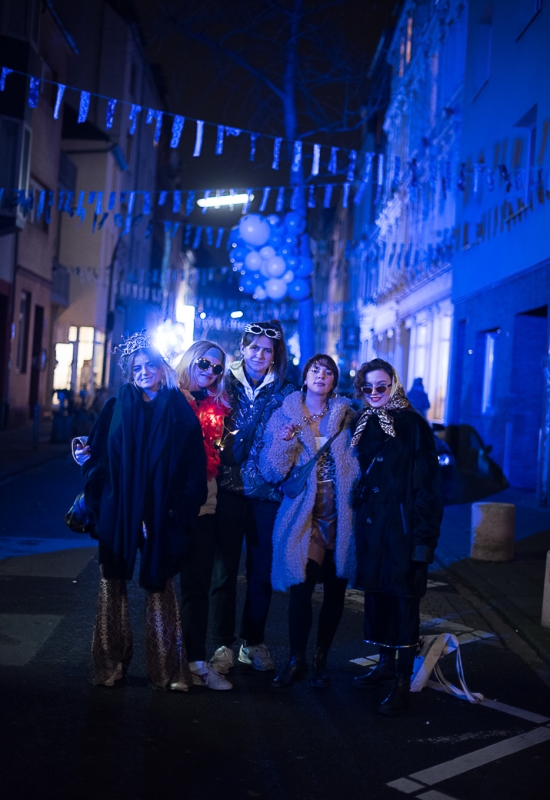 Der Kölner Kneipenchor singt, und es regnet Blumen aus den Fenstern. Aus der urkölschen Kneipe „Em Höttche“ schallt Musik von Jupp Schmitz. In der Galerie K18 wird eng getanzt. Etwas weiter: Der Club Nachtigall. Er zieht zur späten Stunde die Feierwütigen in seinen Keller und schafft den Ausnahmezustand: Fastelovend!